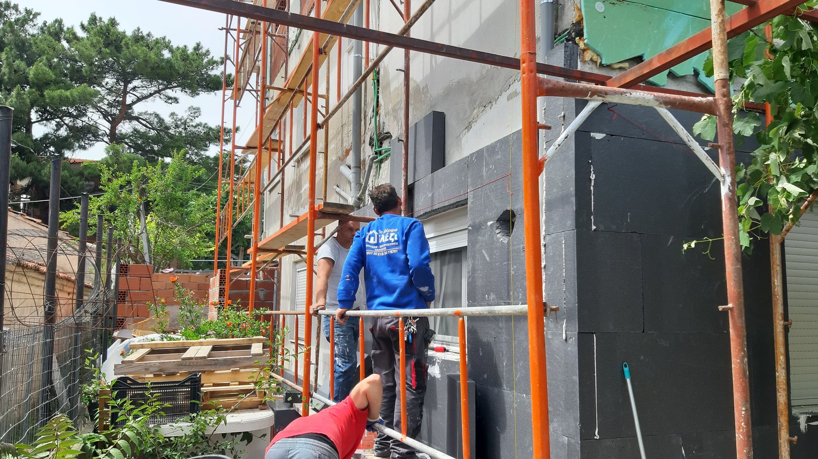Έγινα αποξήλωση της προηγούμενης εγκατάστασης θερμομόνωσης καθώς δεν είχε τοποθετηθεί με τρόπο σύμφωνα με τις προδιαγραφές. Τοποθετήθηκε περιμετρικά του κτιρίου θερμομόνωση. Έγιναν παραμβάσεις στις υδραυλικές εγκαταστάσεις ώστε να συνηπάρχει αρμονικά με την εγκατάσταση της θερμομόνωσης.